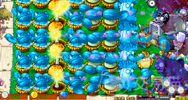 其实小编建议在这个关卡当中可以多使用胆小蘑菇和蓝西瓜投手以及向日葵叠种胆小蘑菇。胆小蘑菇的花费值比较低,叠种向日葵后可以发挥出双重属性,而兰西瓜与高冰果的寒性属性相呼应,可以大大提升高冰果的冷冻技能,并且蓝西瓜投手自身的弹射伤害值也非常的高,能够对一些巨型僵尸产生较强的伤害,这种搭配组合模式可以让玩家顺利挺过十波僵尸攻击,完成高校通关。