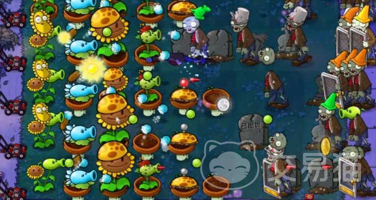 在这个关卡里面,大家要对付的是水里和陆地上的僵尸。游戏开始后,僵尸们会陆陆续续地冒出来,玩家需要开始摆放植物卡片来防御他们。当大家摆放到一定程度时,游戏会提醒我们有一大堆僵尸要来了。这时候就必须要继续摆放卡片,做好防御准备,然后打败所有冲过来的僵尸。