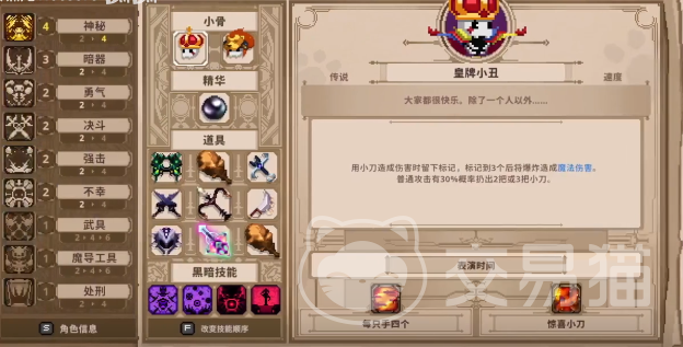 在这款游戏中有多个不一样的头骨类型,其中比较受到人们关注的就是小丑,小丑是一个速度型的头骨,没有攻击判定,相对来说比较稀有。小骨英雄杀手小丑应该如何来配装呢?如果玩家对这一个内容有兴趣,可以看一下接下来的介绍,在看完之后就能明白。