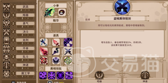 无形剑:拥有15基础伤害,还有10个暴击率,是一个很不错的刻印。二暗器和二不幸两者都拥有较高的收益,同时还会拥有比较高的暴击伤害,可以给很多的道具造成爆发性的伤害。