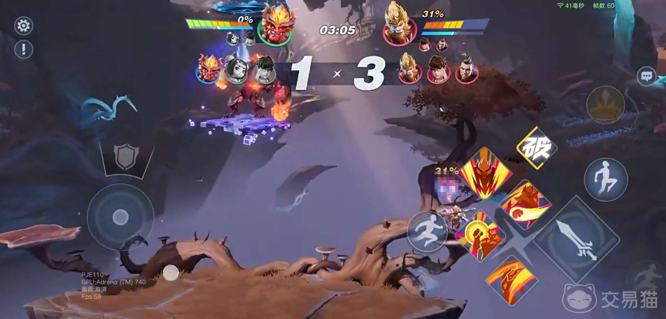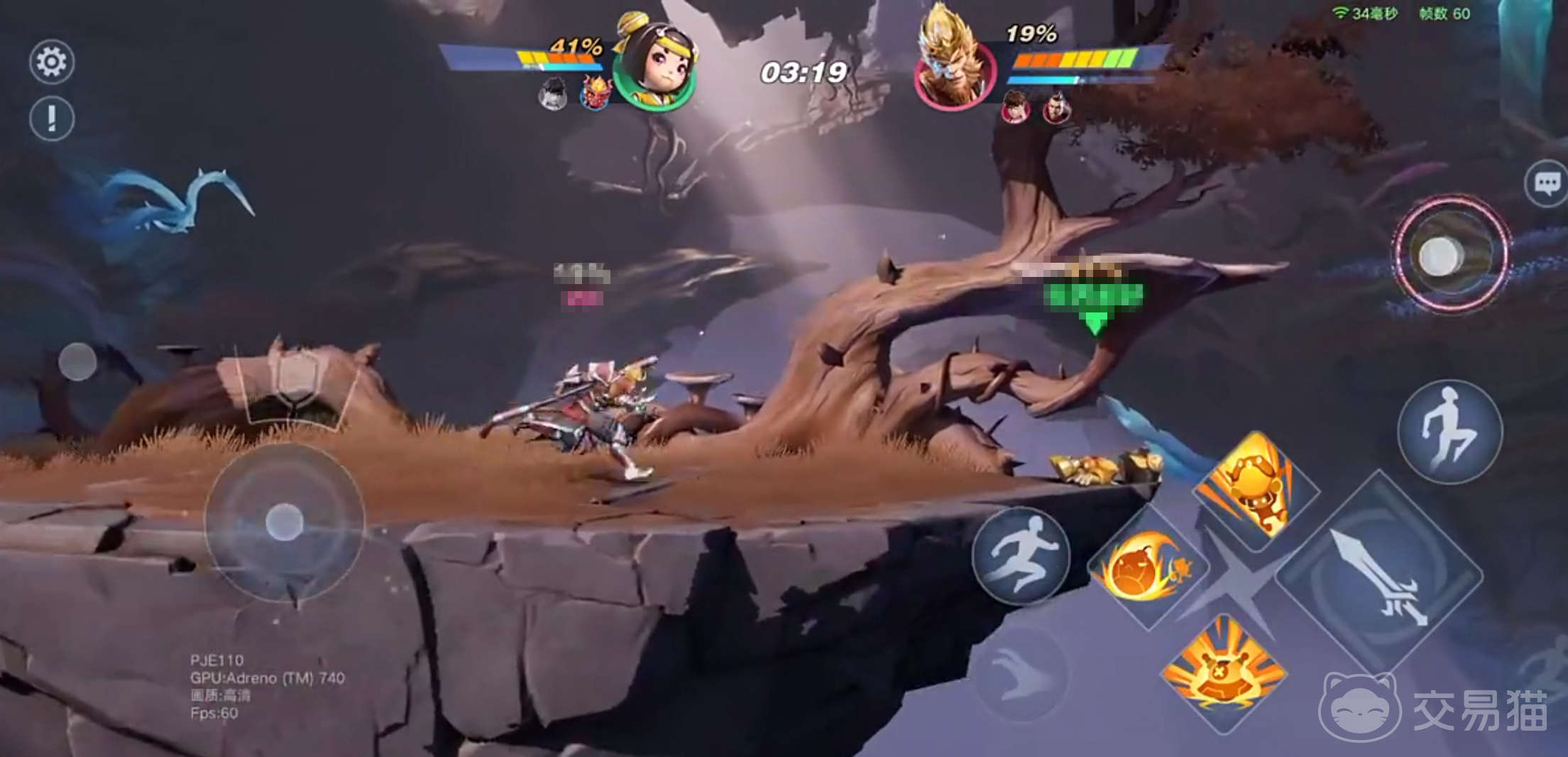 再来看看他的二技能斗战冲锋。孙悟空会向前冲刺并挥动金箍棒,冲锋时可以按二技能或普攻来改变攻击方式,而且还能和一技能联动。他的二技能也可以打击挂在边缘的敌人。