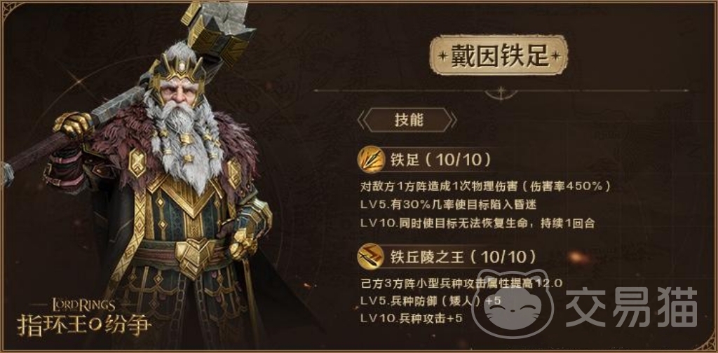 精灵女王是神话级指挥官,伤害可观,同时她的支援以及限制属性优越。并且她具备目前游戏里唯一100%祛除敌方减益的技能,在战场上有大用处。戴因铁足也是神级指挥官,他的输出绝对是游戏中t0级,并且他的统领属性也很优秀。