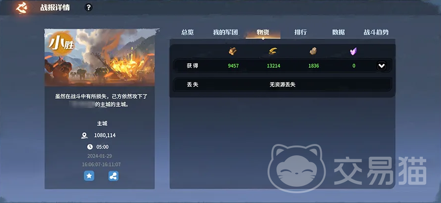 如果此时进攻方将对方主城的主堡击毁,则进攻方获胜,如果没有达到这样的目的,则防守方获胜。还将根据攻城方所摧毁的建筑物总生命值和所有建筑总生命值的比例,来计算本次战场损毁比率,可以将守城方非安全资源夺取过来。这里指的仅仅是非安全状态下的资源,处于安全保护下的则不会被掠夺,所以不用担心战败之后一无所有。