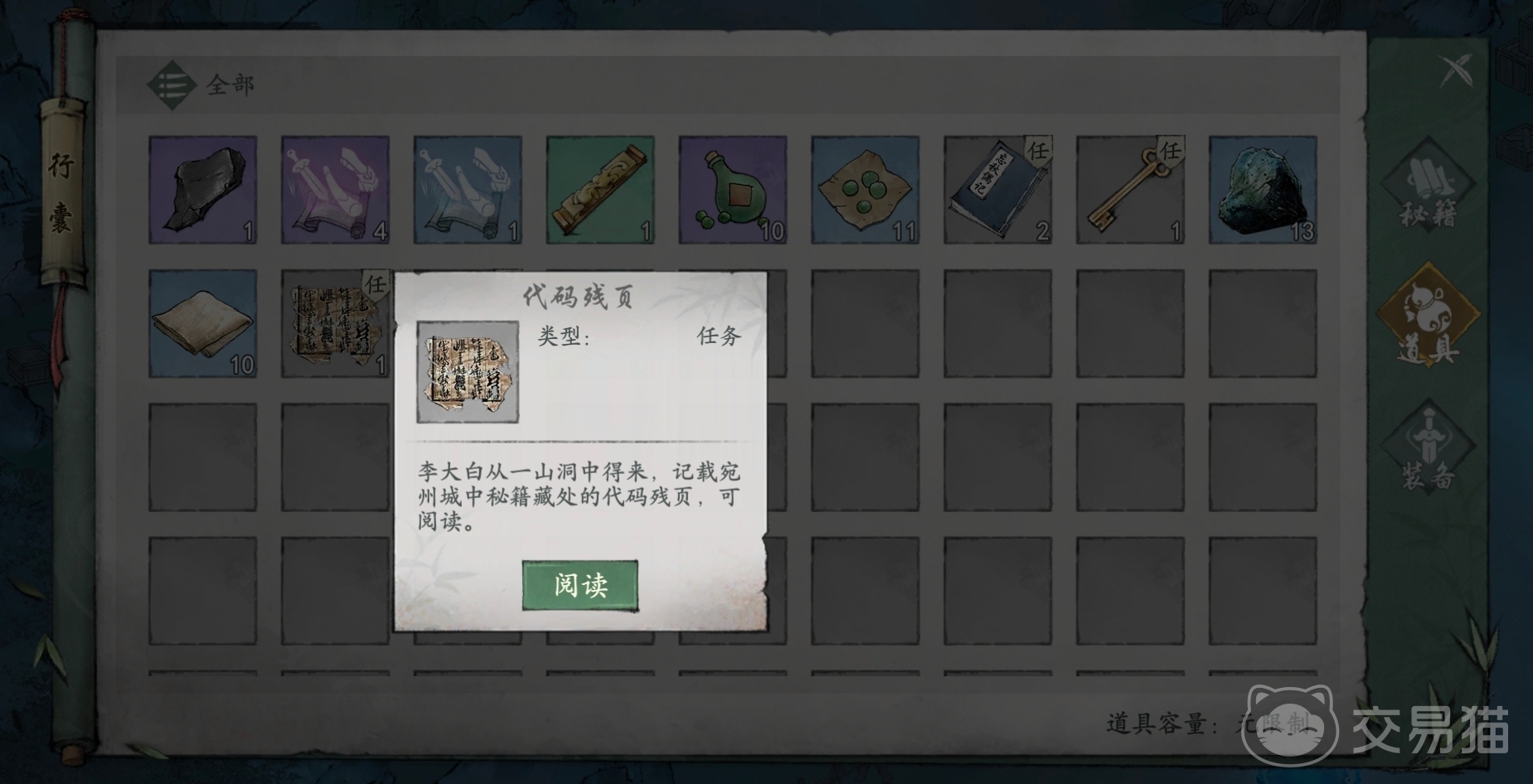[代码]人物地点在城门小站子,送李大白礼物开启任务。“奇变偶不变”问题的奖励是神秘代码。