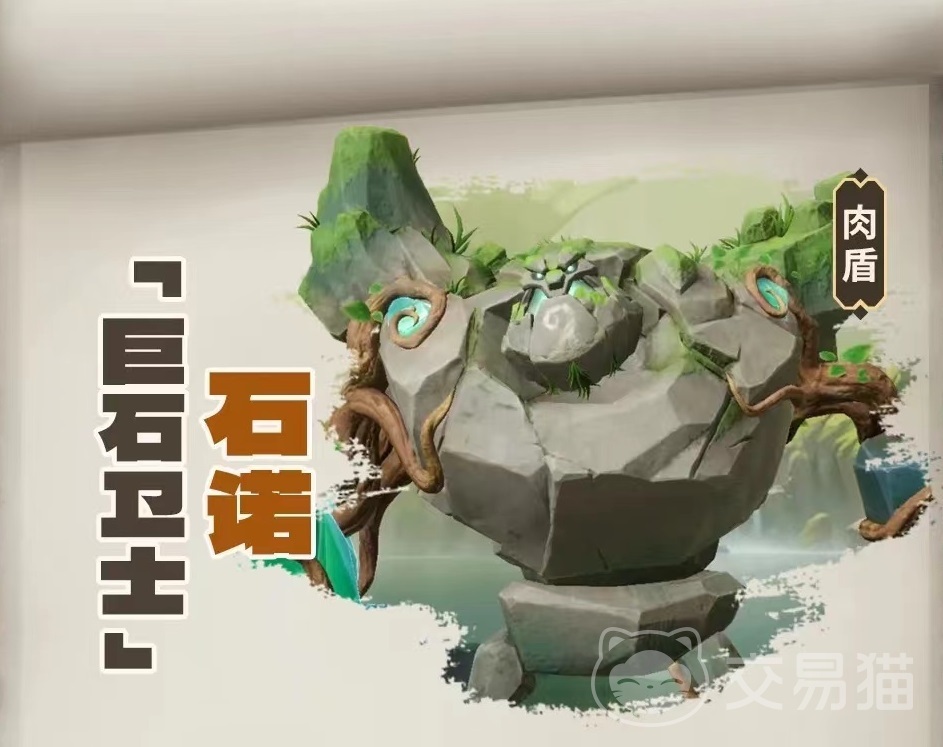 第6名是巨石卫士石诺,是一名有着坚硬外表的肉盾型英雄,本来是一块毫不起眼的石头,但是被林妖长老赋予生命,将周围石块吸附在了身上,并获得了控制身体的能力,最后在一块蓝绿色晶石影响下激活了意识。成为守卫的石诺可以挥动手臂,将不速之客扫出森林,永远冲在战场前方,为队友扛下伤害。