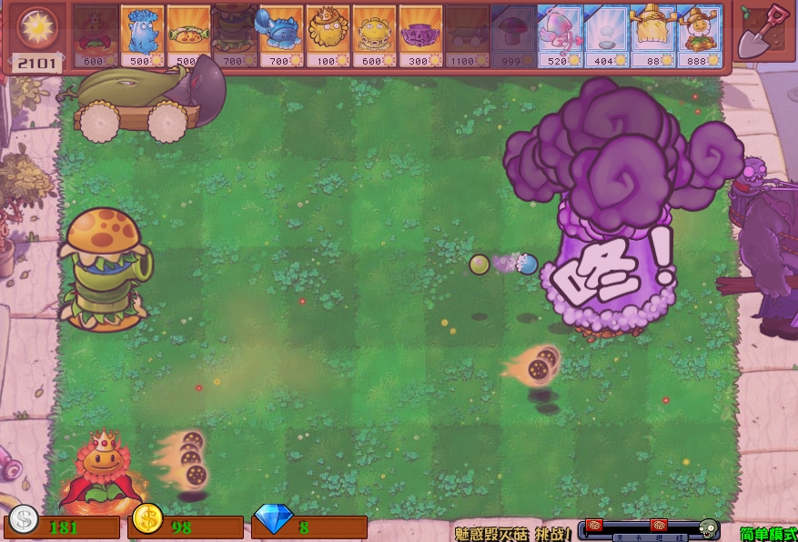 在这个模式下,敌人基本上都为巨人僵尸,而魅惑毁灭菇具有魅惑和大范围伤害两种特性,玩家可在巨人出现后用它来魅惑巨人,使它为自己而战,在前期时玩家可利用其它植物构筑防线,后期则需要找准使用魅惑毁灭菇的时机来“收买”巨人。