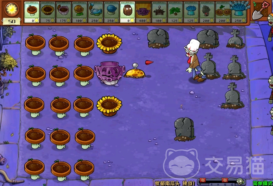 该模式下玩家将会在墓地地图里进行挑战,植物阵容游戏已经为玩家们配好,玩家要做的就是利用这套阵容来抵御住僵尸。该玩法过关的关键在于忧郁南瓜头这种植物,合理地去利用它进行防线布置,才能让僵尸无法靠近玩家的小屋。