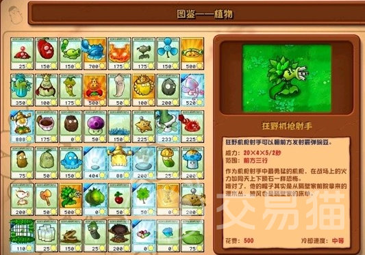 狂野机枪射手:这就成为人们梦寐以求的植物,相当无敌。完全可以当成是主c,哪怕没有出色的穿透力,但依然拥有十足的火力。一旦拥有这一张植物卡,那无论面对什么样的难度都是十拿九稳,不会有太多的复杂之处。