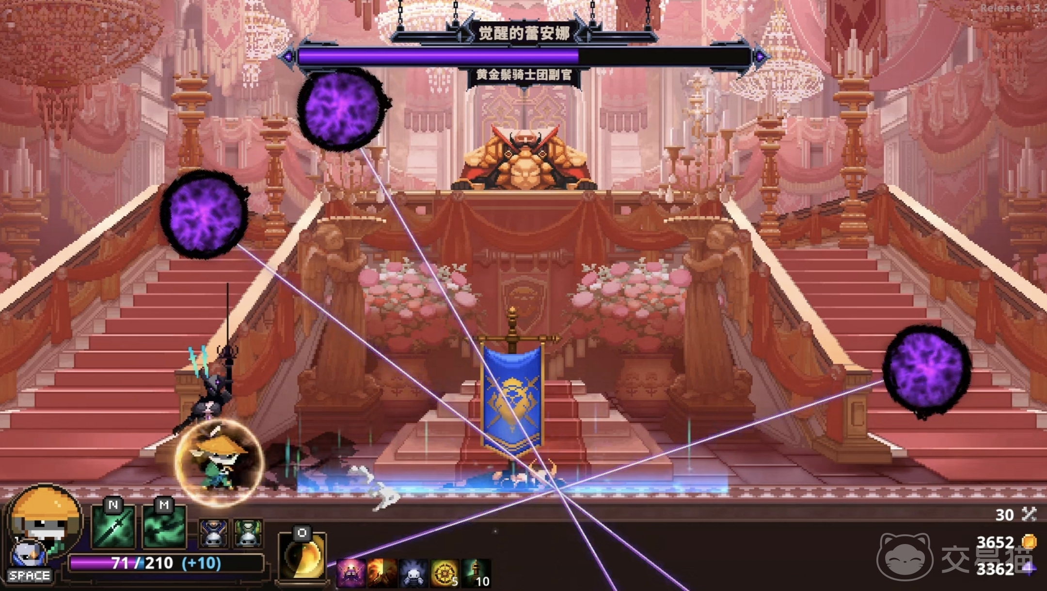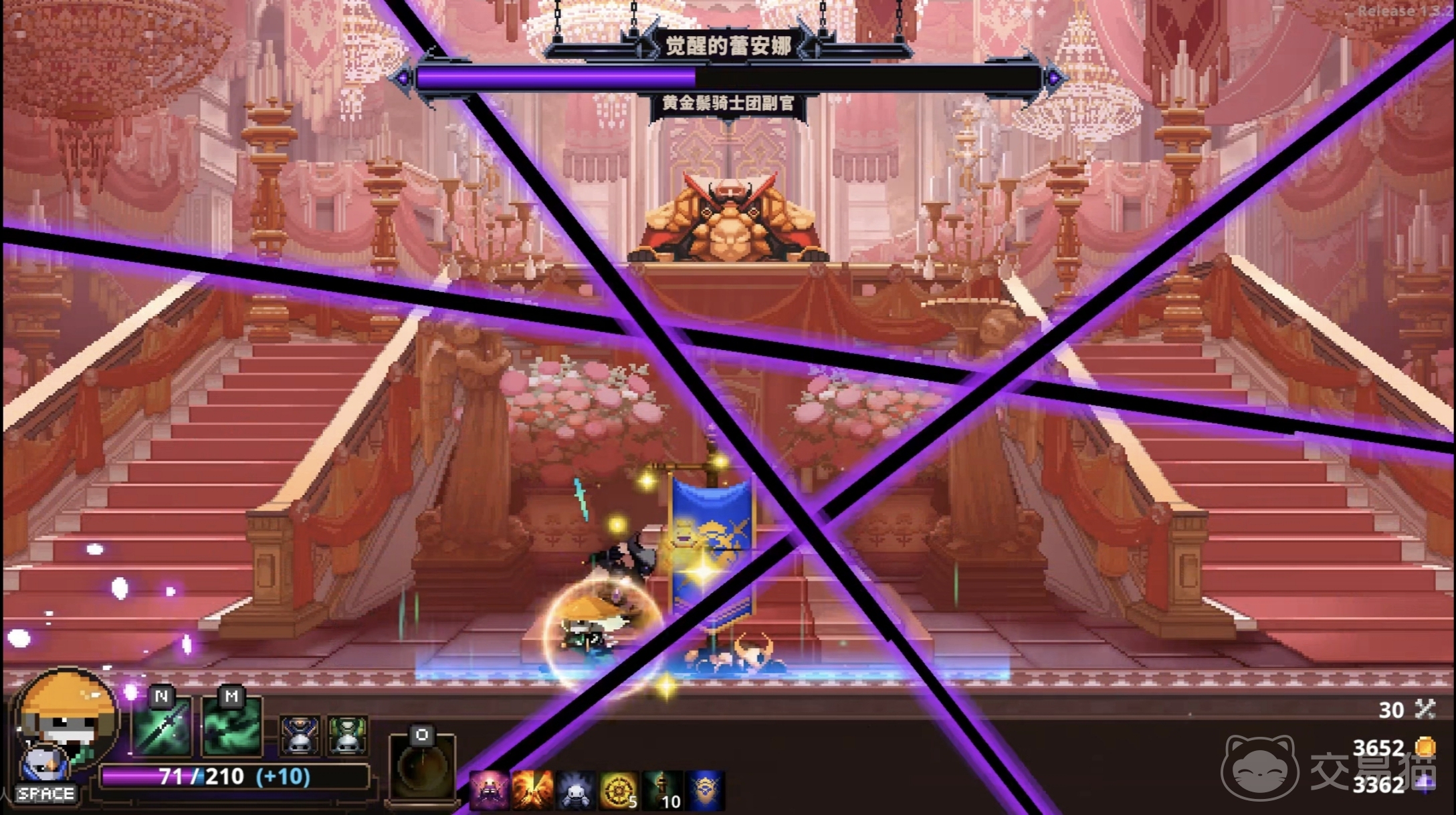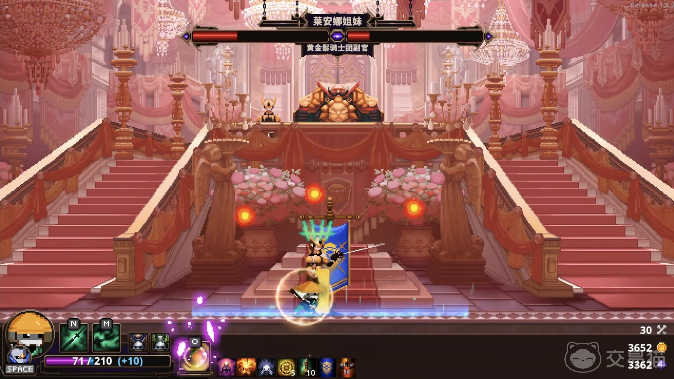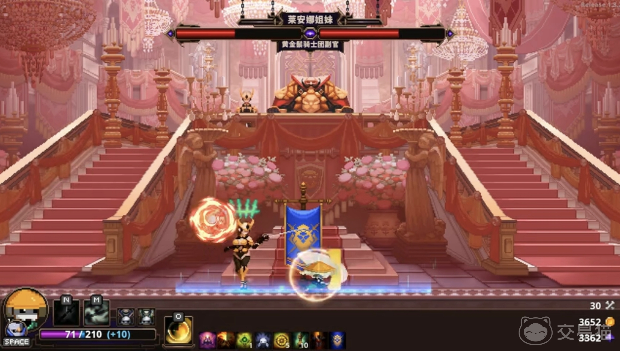 莱安娜姐妹的分身发出攻击波的时候注意开启护盾抵挡,再加上往分身的位置攻击就可以。还有一种稍微难一点的招式,就是boss会召唤大片剑影,投向平台三分之一的大片位置。这种情况先快速离开被攻击范围,然后等待boss打完这一波再上去就可以了。