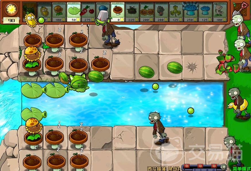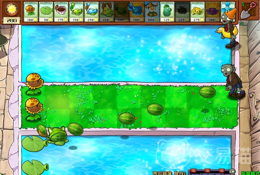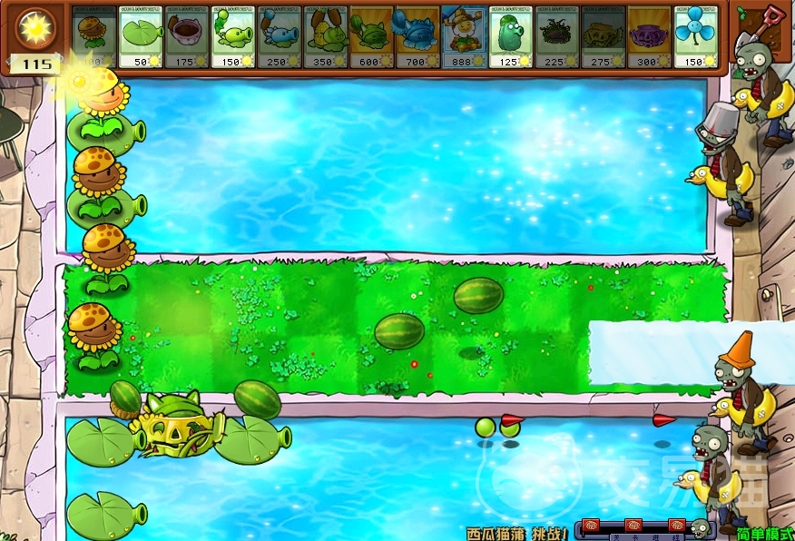 实战中,若关卡的初始阳光大于100,玩家可在水面上放下一个西瓜香蒲,然后就能安心地去放置向日葵等生产阳光的单位了,等向日葵全部种植完毕后,再去补充其它的攻击植物,这就是使用西瓜香蒲的玩家在冒险模式中常用的通关套路。