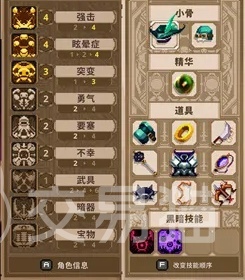 如果没有突变,宝珠也可以换成魔法颈链,来增强眩晕的时间,我还可以选择炸弹弓和手里剑,加上修女,这个组合比较适合大家,在前期开荒的时候来使用,炸弹弓,加上手里剑,这两个装备可以很强的来增加玩家们的攻击能力,最后,由修女的权杖来帮助大家进行回血,不仅可以提高大家生存的能力,而且对续航的帮助也很有效果。