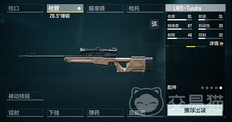 另外枪口的配件可以选择补偿器跟消音器,弹道补偿器是可以降低枪支后坐力的,连续设计的时候方便玩家控制枪口,不过枪声和闪光是会有很大提升的。消音器是降低枪声,这样就不会暴露自己当前的位置,同时也会降低射程和伤害。