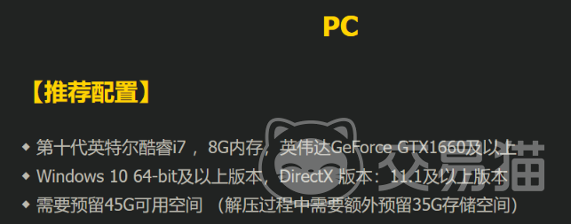 说完移动端的配置需求这里也顺带着将PC端配置需求也一并介绍了,PC端最低要求第七代i5处理器、8GB运存、gtx970显卡;推荐第十代i7处理器、8GB运存、gtx1660。