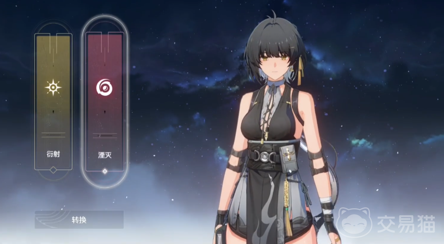 3、点击切换按钮进入之后,可以发现角色有两个选择(如下图),“衍射”则是主角的主属性,而旁边的“湮灭”就是角色的暗属性啦,选择“湮灭”进行转换就成功的切换至暗属性了哦。