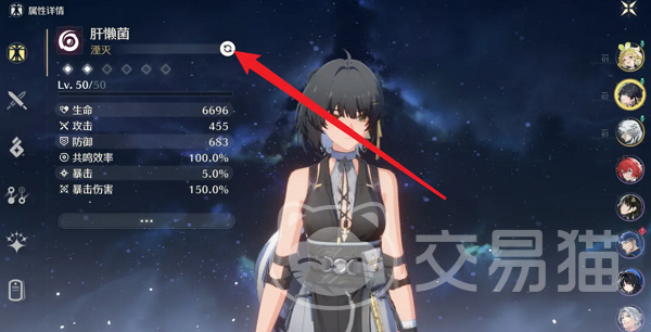 2、然后我们就会发现自己进入到了角色的详细信息页面,在这里可以看到左边有一个切换的图标(如下图),点击就可以进入属性切换的页面了。注意!如果没有发现这个切换图标的就代表你的等级还不够,去完成等级突破在重新进入这个页面就可以了。