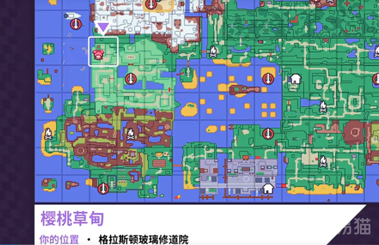 第一次遇见花璃仙子是在樱桃草甸,我们在这个地方先找一个修道院,只要找到就能进入其中,在右上方能发现一个蓝箱子,我们将箱子拾取后,可以将其放到台阶上面。