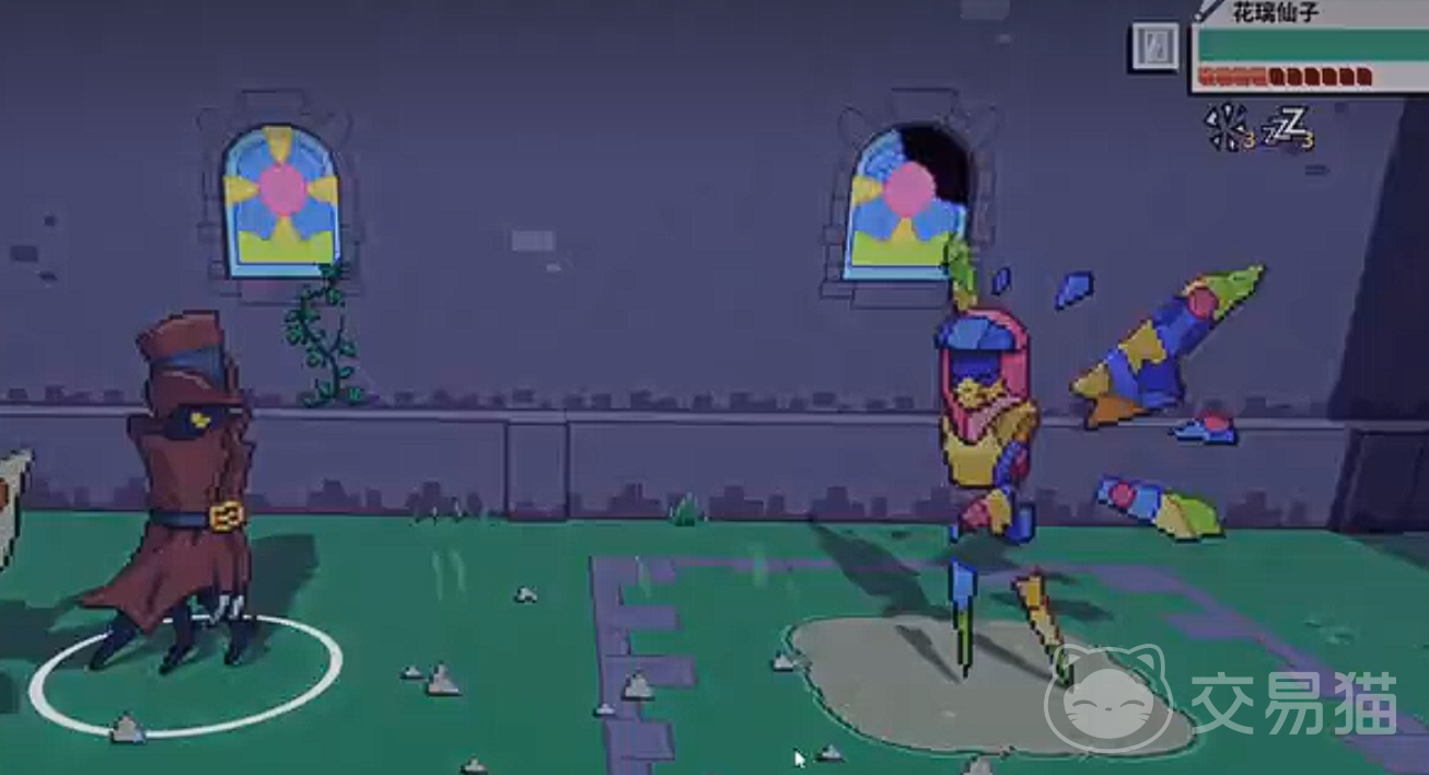 注意这里要放在右上方的台阶下面,而玩家需要站在左下方的台阶处,在这里能看到一个红色的按钮,只需要点击就会出现动画,并看见花璃仙子,这里如果不小心将其击杀的话也没有关系。