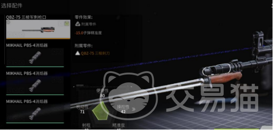 刺刀全名叫做三棱军刺作为枪口,只有在专属武器上才能够搭配并使用,也就是小伙伴们常见的QBZ-75.为这个枪械添加刺刀之后,近战能力瞬间提升,而且性能拉满,不仅能够远程射击,还能够近战刺杀。