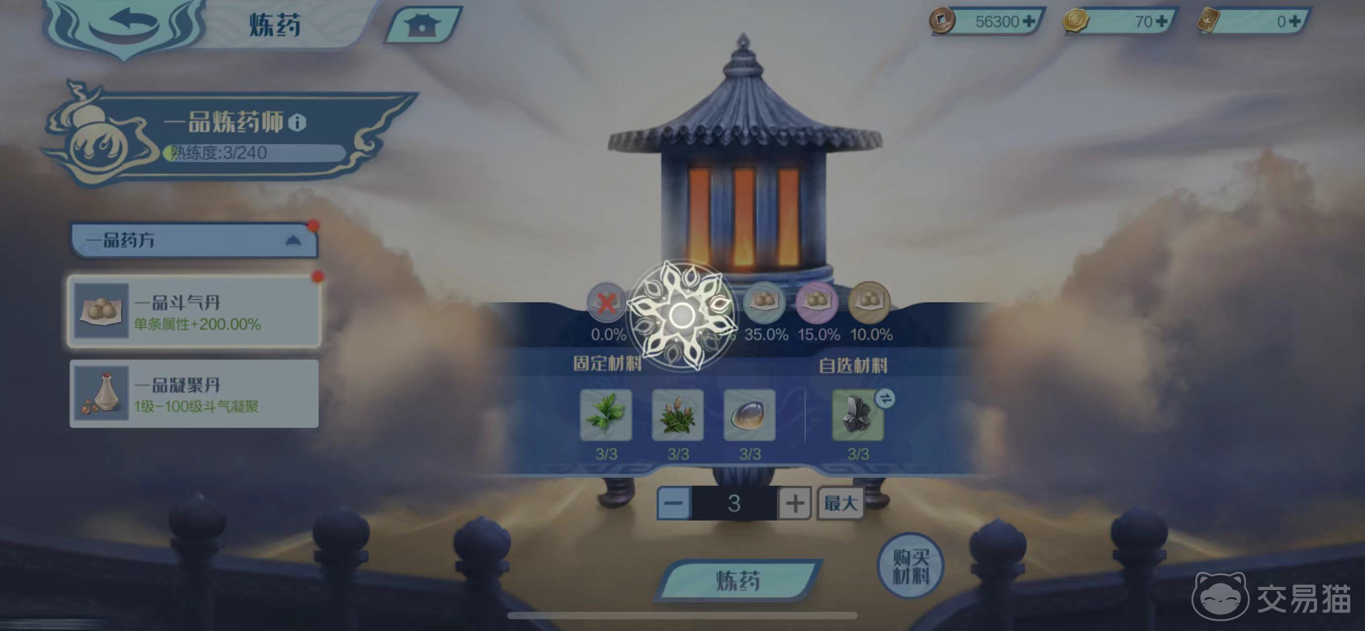 大家可以去搜寻这些材料,当材料符合要求之后即可开始炼药。这时候也可以直接选择需要的丹药数量,不同类型的丹药的成功率也不一样。一般来说,等级越低的弹药越容易成功。不过随着炼丹等级的提升,也能大幅提升制作丹药的成功率。
