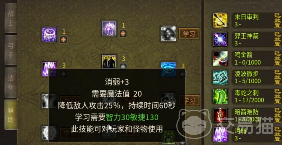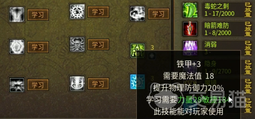 另外,为了增加你的生存能力,还需要学习铁甲辅助技能,这样即可增加20%的物理防御力,然后还需要学习削弱,这样可以减少敌人25%的伤害,持续时间长达1分钟。让你就算没有坦克队友,也能好好生存。