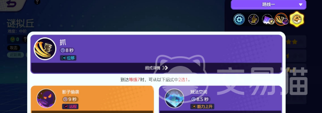 “嬉闹”这个技能可以让谜拟丘向前方跳跃,在攻击结束后,谜拟丘还可以再次跳跃到指定方向,这就需要玩家掌握好跳跃的目标和时机,以及如何接上下一个技能,以实现最佳的连击效果。而“暗影爪”这个技能则相对简单一些。谜拟丘会用爪子攻击前方的敌人,造成伤害并降低其移动速度,同时还会恢复能力,每次普攻命中后,“暗影爪”的冷却时间都会缩短,并继续增加下一次攻击的次数,这个最多可以叠加到4次。这使得“暗影爪”在战斗中成为了一个非常实用的技能,既可以保证输出量,又可以锻炼玩家的穿插普攻能力。