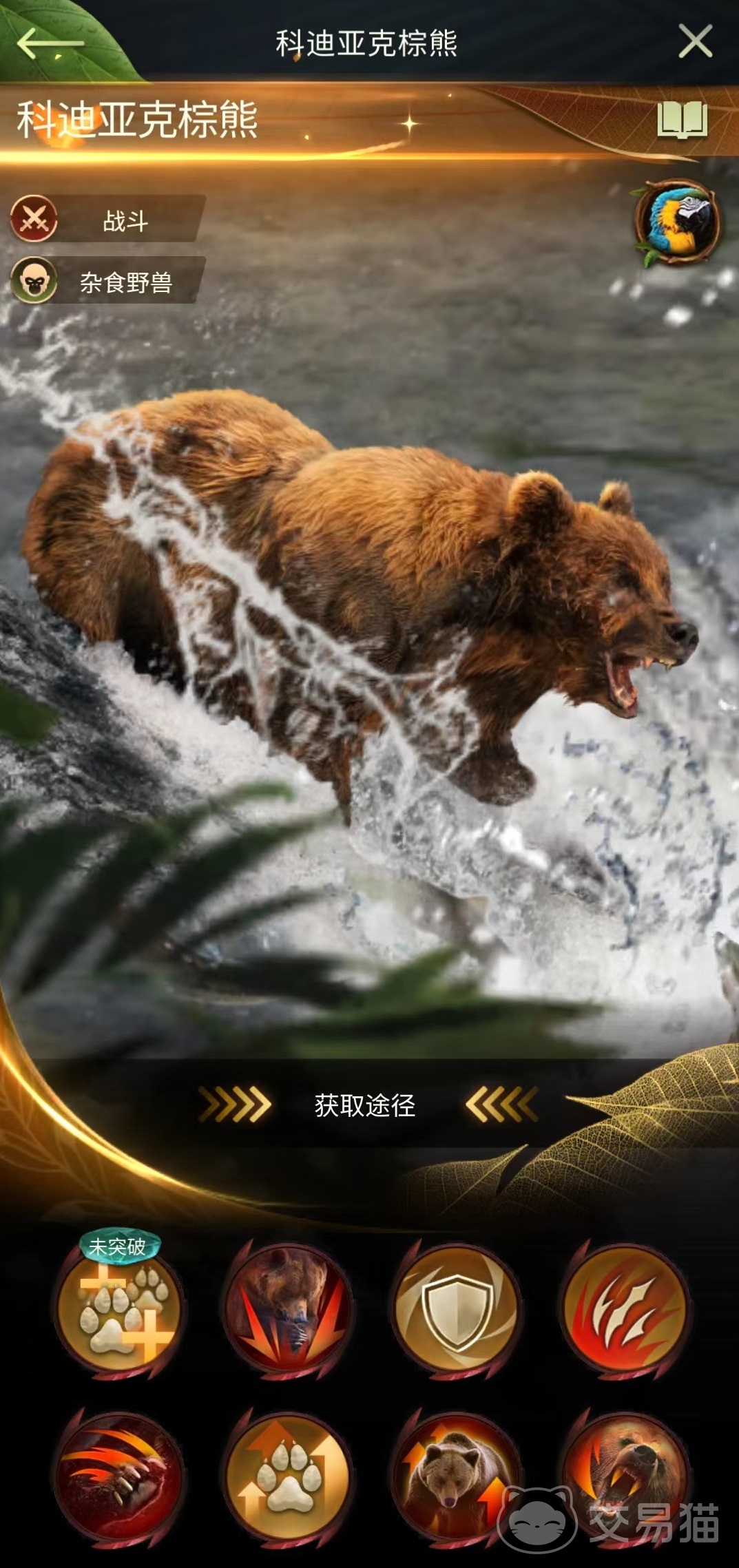 科迪亚克棕熊是棕熊中体型最大亚种,属杂食性动物,拥有优秀的嗅觉和视觉属性,分布在科迪亚克岛。在野兽领主新世界中,玩家可以将其招募进来成为很凶悍的异兽,今天小编来讲下野兽领主新世界科迪亚克棕熊技能怎么样。在游戏中设计出的异兽和野兽都分为不同类型,例如科迪亚克棕熊就属于杂食性,它就适合携带杂食性野兽出战。