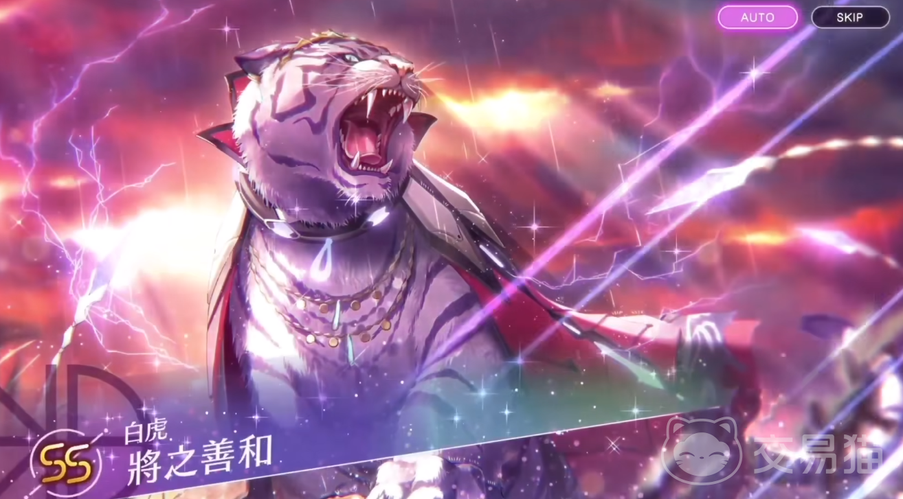 限定的SS卡将之善和,是雷霆女王换装,雷、突双属性。技能豪杰傲气:用寄宿着雷霆之力的双爪子,袭击全体敌人,基础伤害1274点。大招破坏女王:激发落雷,朝着敌方发射雷炮弹。hit9点,基础伤害3627点。将之善和白虎是很多雷队伍的核心输出,因为它的输出手法简单直接,一破就能上场。