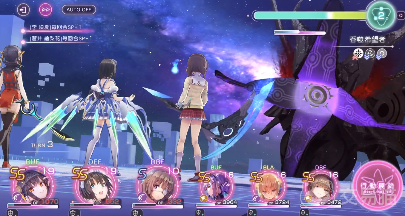 刹那memory:初始技能护盾光线,消耗4点sp值,基础伤害342,基础治疗量483。效果为对敌方释放能量弹,自身恢复dp,但是技能为单体伤害。19级习得技能挑衅,消耗sp值7点,有1200的基础伤害。效果为恢复自身dp,最高可以达到dp上限的120%,并且嘲讽敌人2~3回合,该技能释放范围为全体敌方。