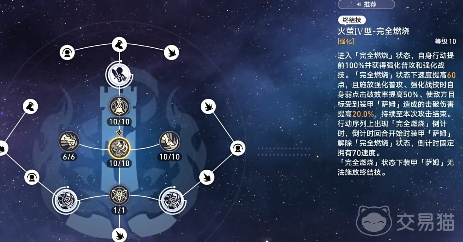 流萤的机制在游戏中也非常强,角色使用战技时将会扣除自身的一定血量并且回复60%充能,而终结技则是操控机甲进入超载模式,角色的攻击会大幅度提高,并且每一次攻击都会对敌方消减韧性,玩家在游戏中使用流萤时要时刻注意血量控制,避免使用技能后血量过低。
