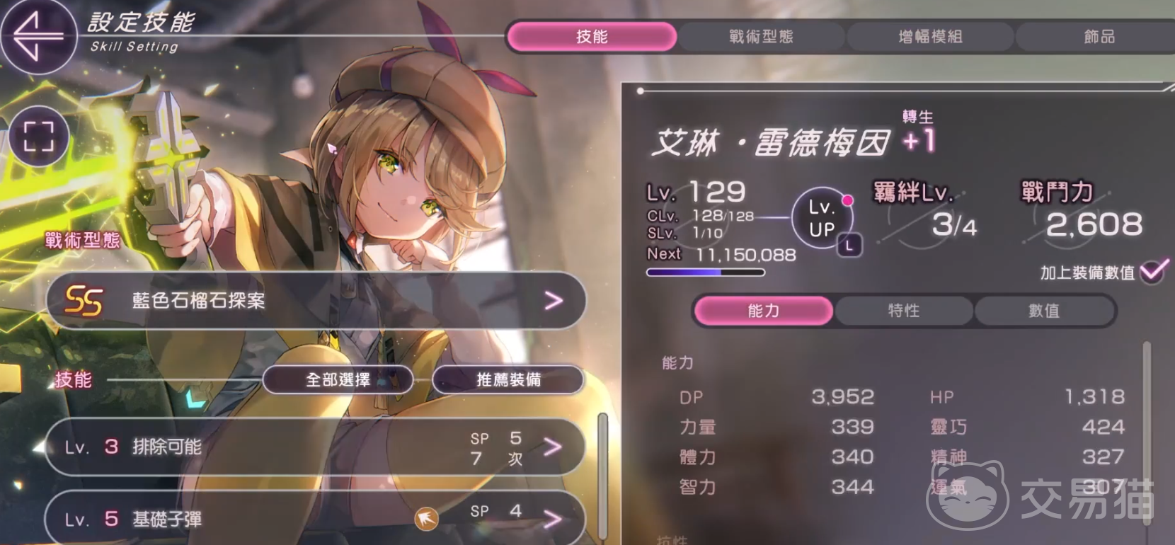 ss卡初始技能:弹丸演绎法。用枪狙击敌人,基础伤害342,单体输出。16级与39级获取新的两个技能:1。、维持思考。提升35%~45%的暴击率,下一次攻击的连击数增加2。该技能连击每次上升40攻击与破坏率,最大可叠6层。2、真相贯穿者。使用揭开真相的子弹贯穿敌方全体,有2000以上的基础伤害,但是消耗sp较多为15点。