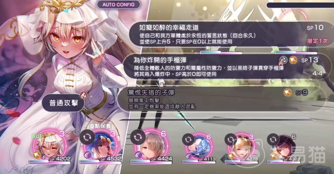 ss卡初始技能惩戒:恢复915点前排dp,并且增加1~2个标记。12级与41级学的两个新技能分别为:1、牺牲。牺牲30%dp,根据标记数提升自身的伤害,每个标记增加16%,随后增加1~2个标记数。2、绝零判决。消耗14点sp值的大招,用冰晶包裹大剑,对敌人进行多段伤害,而且根据自身标记数,会获得每个16%的提升。