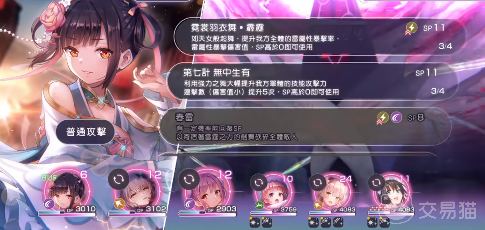 ss卡初始技能为强化,提升前卫下个技能50%~65%的伤害。11级与37级解锁两个新技能分别为:1、卧龙天命。牺牲30%前卫的dp,提升其下一个技能50%~65%的攻击力。2、第七计无中生有。消耗11点sp,用精妙的舞姿,激励移民有方向,其攻击力大幅度上升可高达70%~90%,小伤害连击数上升5点,而且只要sp在0以上就能开这个技能,但使用后sp会扣成负数。