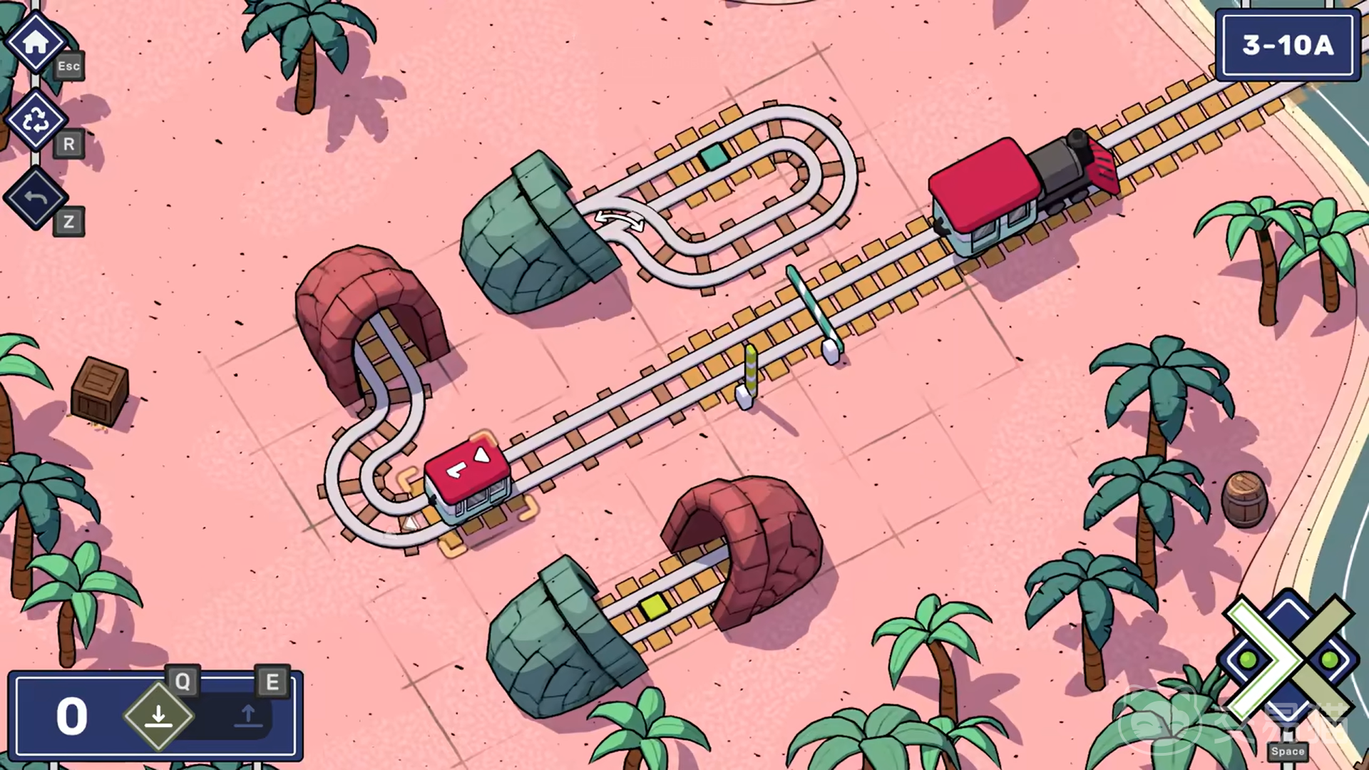 当列车遇到未开启的围栏时将会被直接拦截,玩家无法完成通关,而在3-10中玩家需要将地图上方的轨道进行变轨,玩家选中轨道点击R键就可以改变前进方向,通过让车厢变换轨道来分别触发黄色与绿色的压力板打开终点前的围栏就能完成通关。