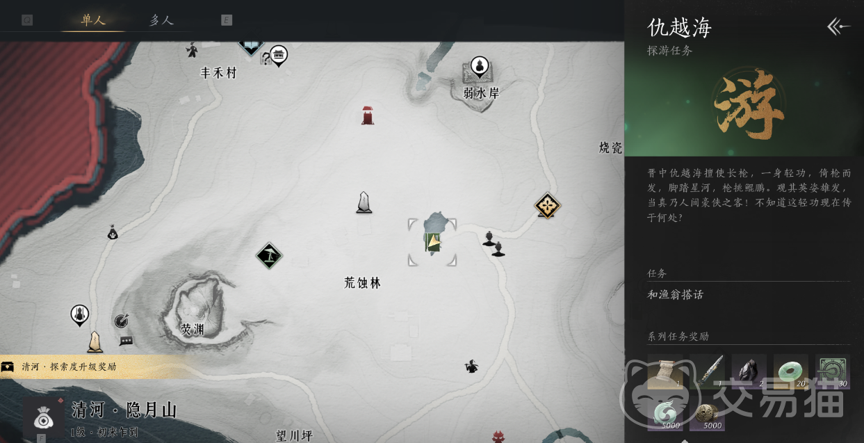 想要获得暮云佩的话,需要大家不断地探索清河地图之后,探索度达到4000之后即可领取。只不过该地图颇为庞大,想要一次性探索完的话。还需要将前面的任务都做完才能解锁相关位置以及地图,探索的过程中大家也能将地图上的奇珍全部找完,就能顺便获得相关材料。