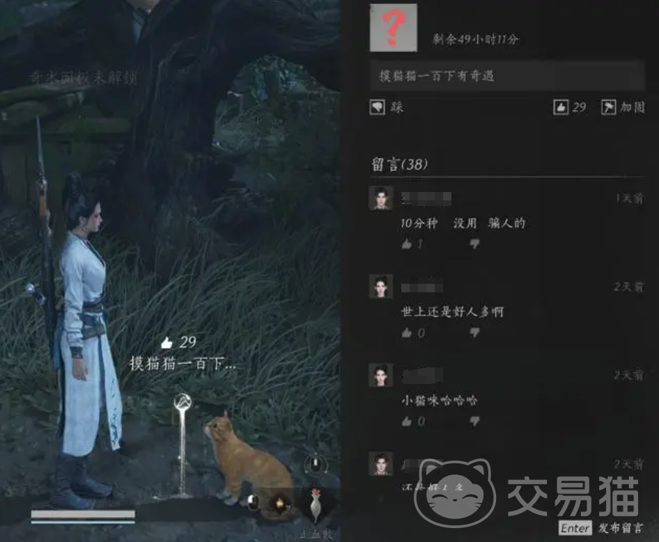 当然并不是所有玩家都抱有善意,也有一些喜欢整活的玩家,就会给予大家一些特殊的指引。例如在小猫咪的旁边有一个骗局,若是触摸小猫咪100下之后,会有奇遇,但实际上并没有什么卵用。所以不要道听途说,也要凭藉自己的见闻,以及其他玩家的留言来分辨出路牌的信息是否属实。