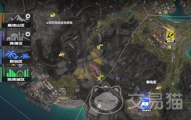 另外一种地图就是群岛区,这是比较靠海的一片区域,玩家能在这个地图里面感受到在海边驾驶的氛围,在这个区域里的地图场景普遍都有一些弯道,是对于玩家来说会更有挑战性的一种,另外就是湾港区,在这个区域里周围的场景会比较密集,到处呈现的风景也都是港口比较常见的集装箱,相对来说算是游戏里中等难度的一个场景地图。