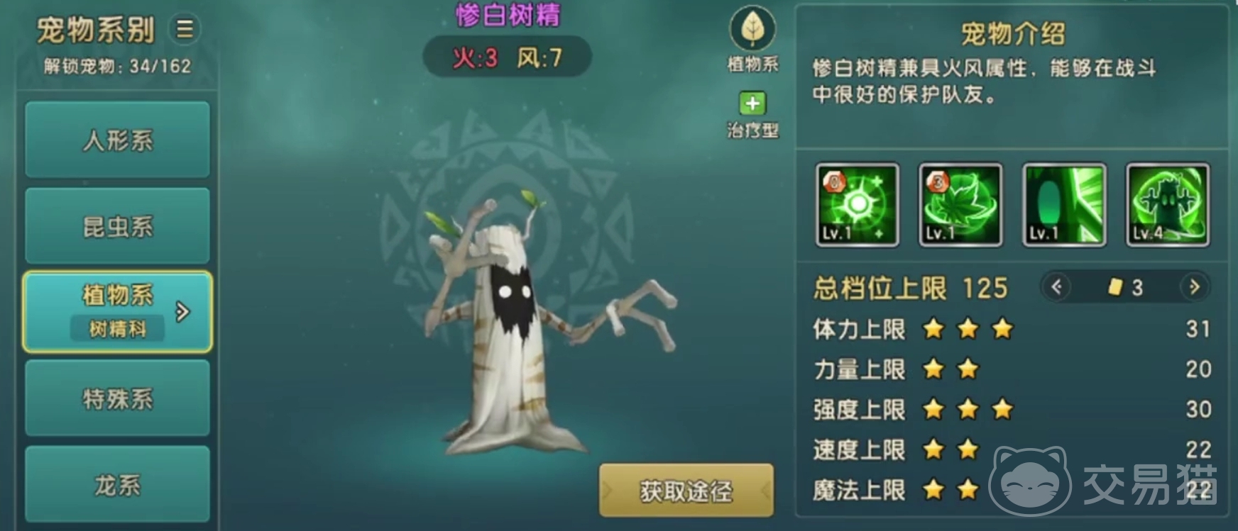 不过精灵科的抽取门槛还是比较高,需要80张金卡随机兑换,不太容易出,那么再来推荐一类普通玩家也可以轻松获取的宠物,就是属于植物系里的树精科,树精科是目前这个阶段平民玩家最好获取的回复系宠物,而且它的实际作战能力也是相当的强的,那我们就来重点的介绍这一科的宠物。