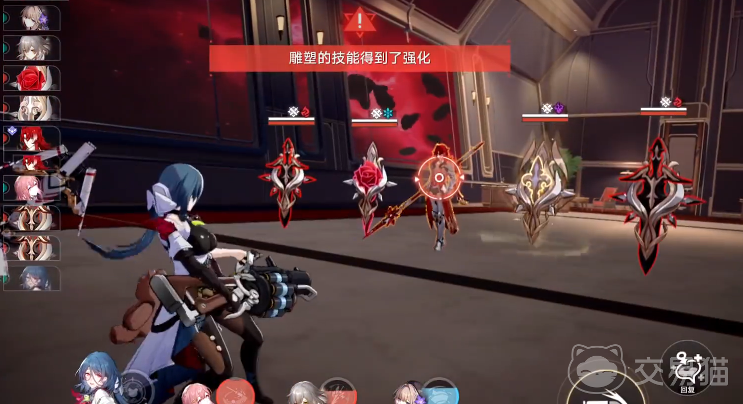 在获得护盾之后玩家的角色可以抵挡一次对方攻击,接下来的回合中玩家就可以放心的输出银枝,将银枝第一次击败后将会进入二阶段,在这个阶段中银枝会召唤出更多的雕塑。
