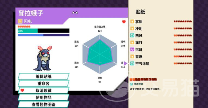 目前虽然怪物的种类并没有很多,但是它的技能设计和机制还是比较有新意的,小伙伴们可以选择任何一个怪物将他的技能贴纸撕下,然后放置到另外一个怪物的身上之后,这个怪物的属性就会改变了,它的技能也会改变,让小伙伴们可以玩出很多不同的风格和趣味。
