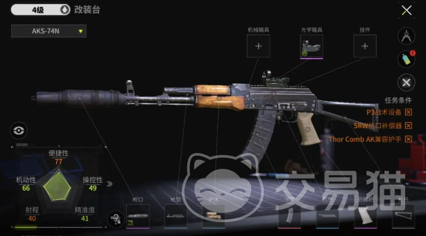 武器方面建议大家选择最适合新手的AK系列,哪一个便宜就买哪个,基本上这个系列都比较好用,子弹上要选穿透等级4级以上的,在武器改装的方面,最差也要安装一个枪口控制后座,其他的配件可以根据自己情况选择。