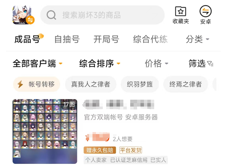 因为崩坏三成品号价格空间非常之大,再加上选择者的预算也有不同,所以不管是几百还是几万块的账号,在交易流程之中安全问题应是要被放大的,就像是直接在平台首页有展现的“安心购”一样,简单易懂一些就是可赠送找回包赔的限定期限服务,所以在针对账号选择上,可以优先考虑带有此字样的账号,因为可不是每个账号都会带的,找到买到也是赚到。