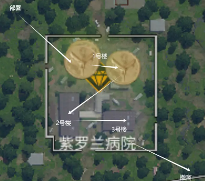 然后是物资方面紫罗兰病院出金的种类比较少,主要在二号楼内,大家在搜集的时候建议从一号楼进入,再通过楼梯进入二号楼,最后再从三号楼撤退,这样是能搜集最多物资的方法。