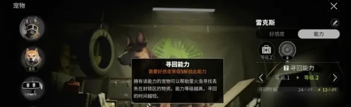 每个宠物都有独自的魅力和专属的外貌设计,选择一款适合的宠物,对于大家后期的战斗,是可以减轻很多的压力,在游戏中,宠物是可以帮助大家来寻找物品或者携带物品的,同时还可以更快速的来收集更多的奖励,游戏中拥有很多免费的宠物,如果新手玩家来选择的话,雷克斯这个宠物狗就可以很好的来帮助大家度过新手的阶段,在后期使用其他宠物来作战时,依然可以利用这个宠物,来帮助自己找回线索和资源。