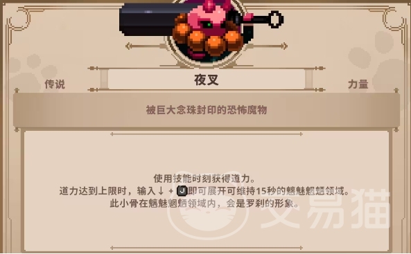 夜叉获取难度高,也是传说级别的头骨,获得难度也相当高。玩家必须通过一系列的活动任务才能有机会得到这类强悍的魔骨。稀有性和强大的特性促进夜叉在玩家中受到高度评价。夜叉魔骨是一种典型的力量型头骨,依赖于玩家使用技能来触发效果。每次玩家使用技能,都会得到【道力】效果,这是夜叉魔骨的关键特点。当[道力]效果达到限定时,玩家能够进入魑魅魍魉的领域。这一领域不但能大大提高玩家战斗能力,还会对四周的敌人造成持续的抑制和损害。对于喜欢使用技能和近战的玩家而言,夜叉魔骨可谓是一个强大的挑选。