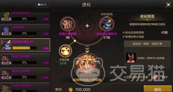 在吞噬成功之后还会返还一定数量的饼干,而至于那些宠物经验,因为是升级到史诗宠物可能在经验上都会有损耗,问题并不是很大。在升级完成之后,别忘记要选择去净化宠物技能,还需要点一动物经验。在这一个功能下,操作非常的简单,在进化时宠物技能等级马上就会进入到重置的状态。