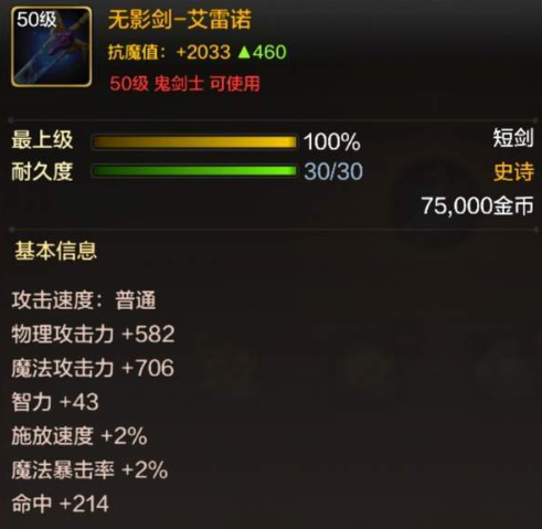 【无影剑-艾雷诺】:建议选择这一项武器,在攻击时可以获得30%的伤害。阿修罗本身就是魔法伤害职业,如果可以选择这项武器,能快速的提升面板效果。
