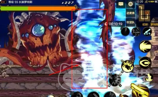 穿地机制:此时会出现十字,还会有罗特斯的触角。玩家就需要选择展开攻击,十字一旦在转变颜色,从原本的黑色变成黄色之后,玩家就需要小心谨慎。
