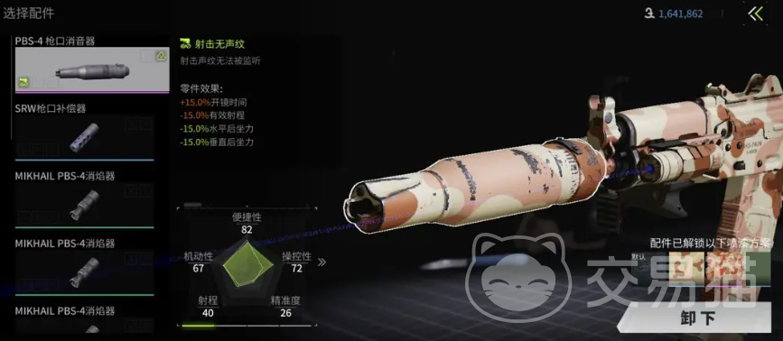 枪口采用SRW补偿器,主要是考虑到枪口的价格比较便宜哪怕是丢了也没什么,但如果你所在区的物价比价高的话,也可以用原装的凑合用。