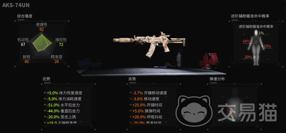 Ak74un的改装思路有很多,可以走极致性价比路线,注重发挥它子弹威力强的特点。枪托直接舍弃,因为其自带枪托会增加后坐力,移速给的也少,所以干脆舍弃掉。