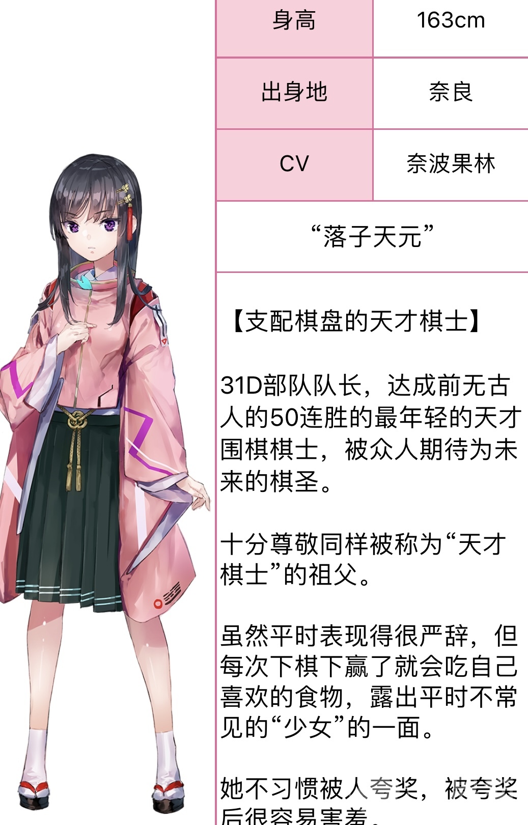 首先给大家带来的就是31d部队的队长,二街堂三乡,在6月6号出生,身高有一米六三,平时性格比较沉闷,但是在下棋或者吃自己喜欢的食物时就非常的少女,当做好一件事情被人夸奖时,会非常容易害羞,是一个支配棋盘的天才骑士,接下来就是,石井色叶这个角色,他是一个艺术家,可以看到色彩独特的世界,但是不能够辨识颜色,他的作品主要是表达极致的独特感,热衷于描述自己眼中独特的世界。